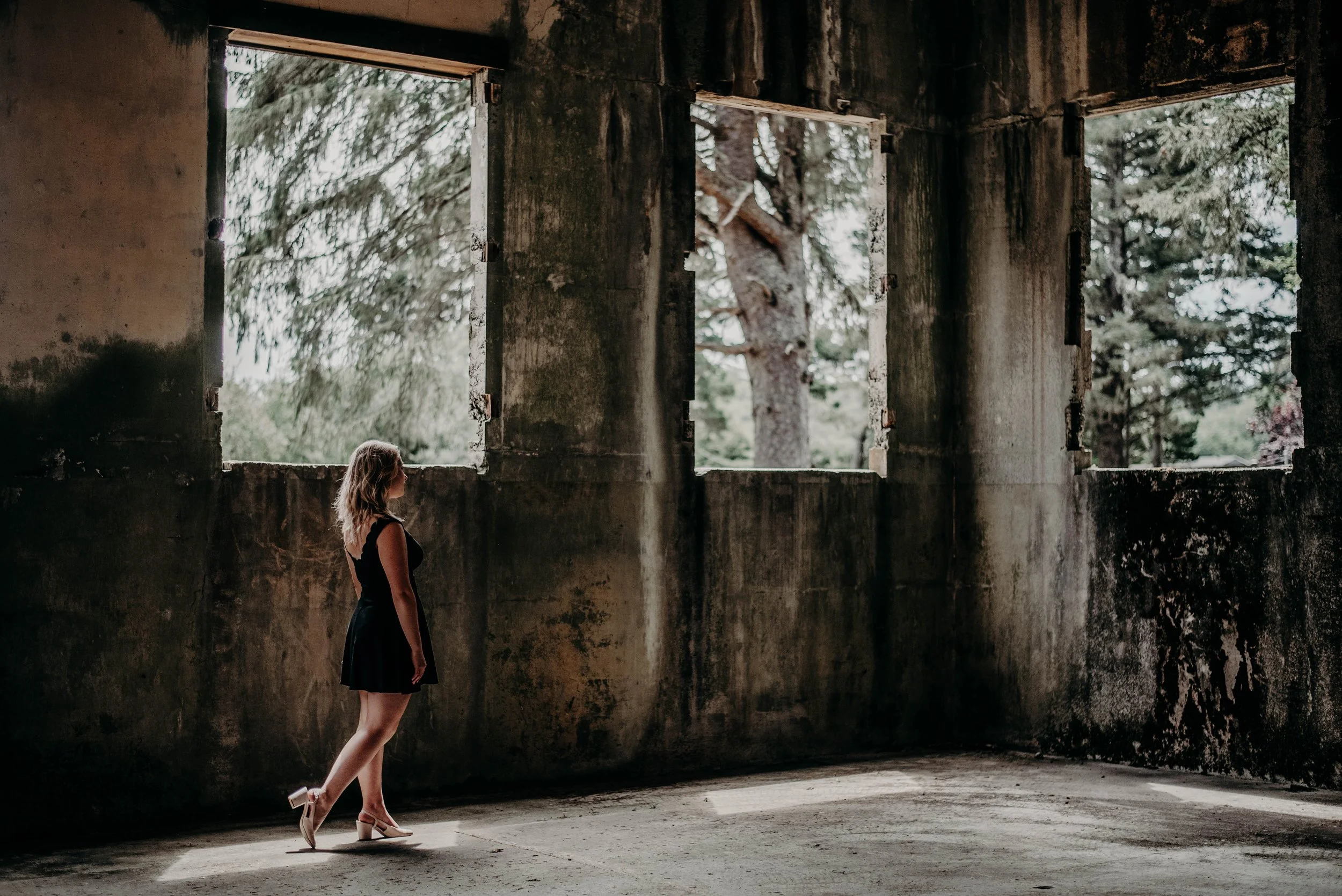 Sam’s senior session was such a fun one to photograph. We took her photos at the old military fort at Fort Stevens, which made for such a cool and unexpected backdrop. The weathered concrete structures and rugged coastal setting created this striking contrast with Sam’s glamorous look, it made every photo feel a little dramatic in the best way.